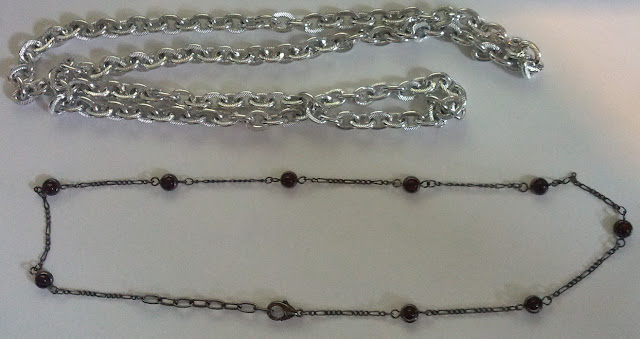 The thrift store here is mostly electronics… old clothing that can’t be re-purposed to much of anything. To my surprise there was a tiny jewelry section through… Not much, mostly plastic pearl necklaces. There were some interesting things, through – I figured I would pick up what I liked and decide on one to use.